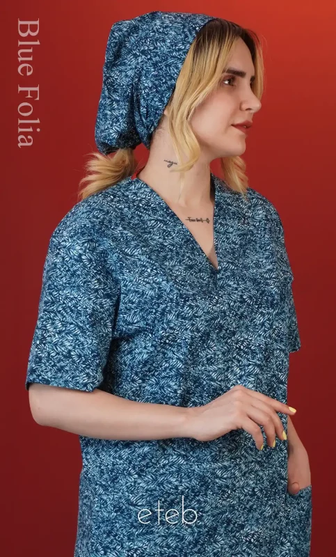 اسکراب لینن طرح فولیا آبی ISSL6