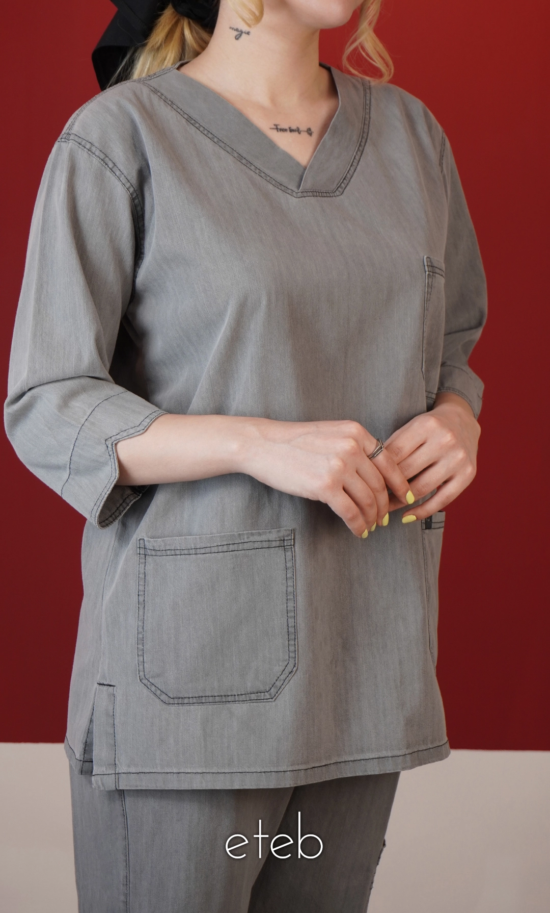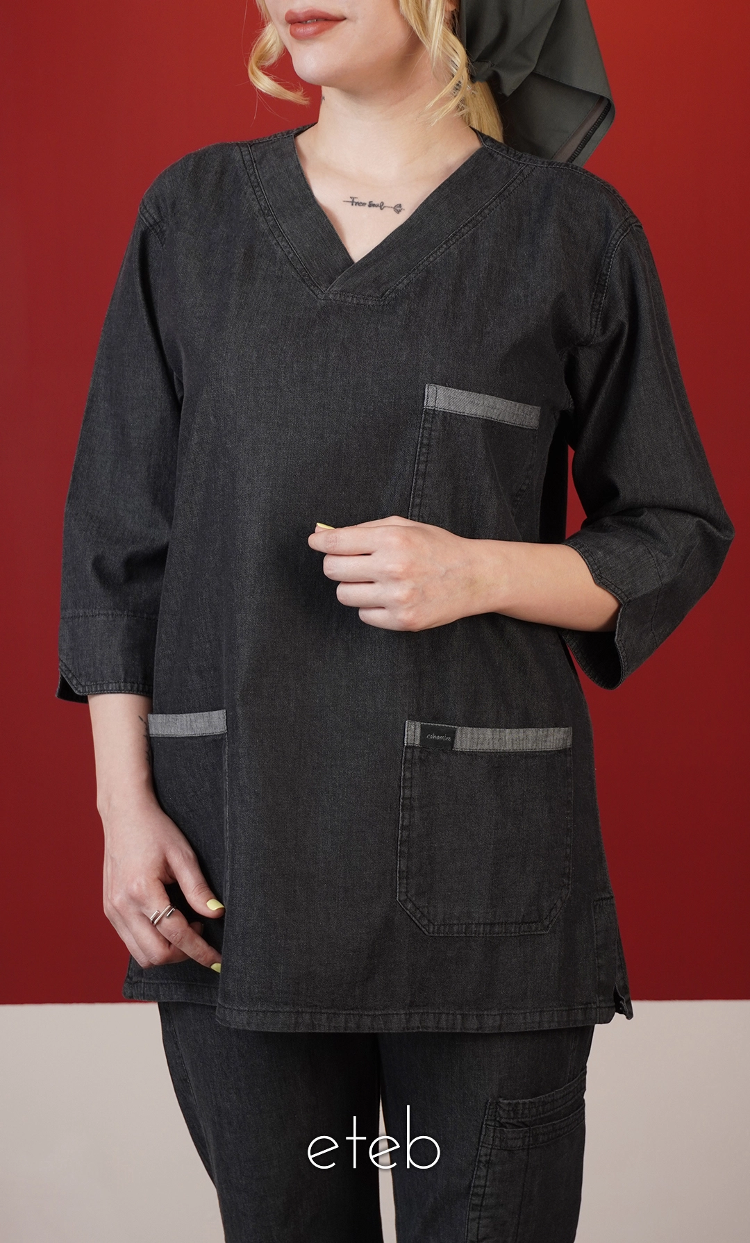 جین ذغالی- تونیک شلوار باکسی ITC103