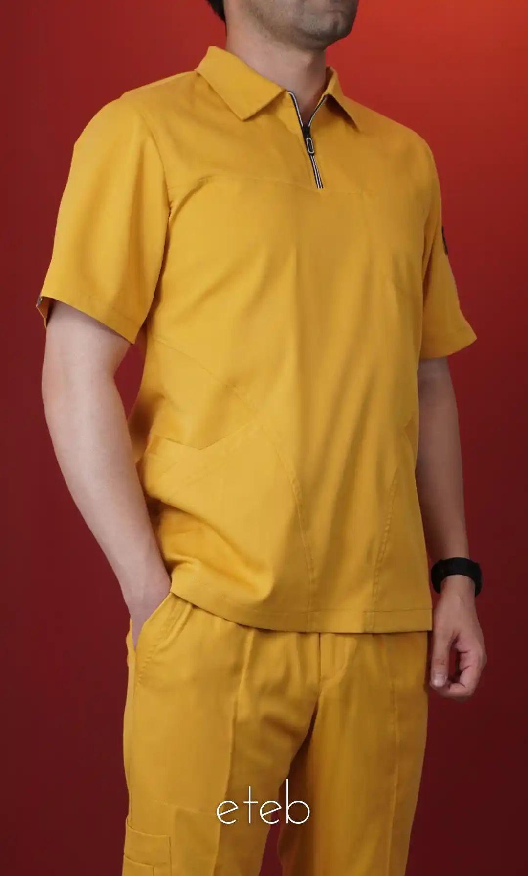 اسکراب شلوار مردانه ایزیلو پیراهنی خردلی ISX202
