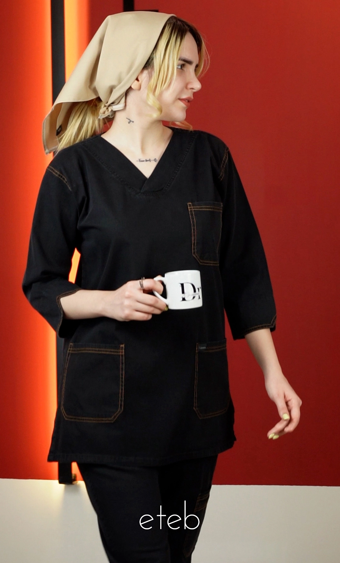 مشکی - اسکراب شلوار پرایم یقه گرد ISP101