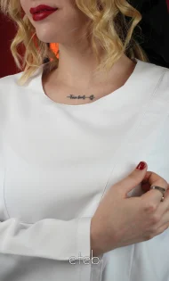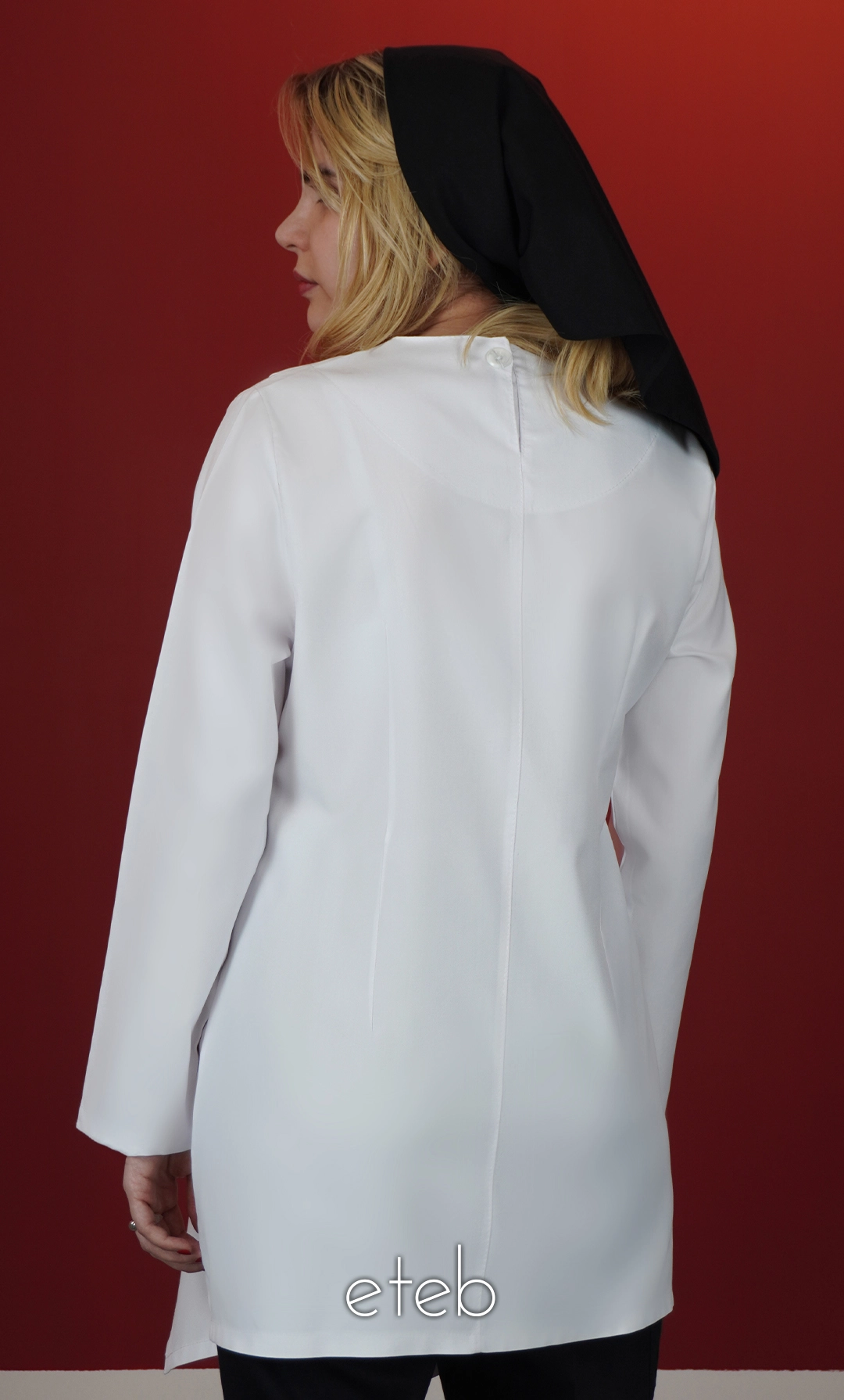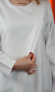 - طراحی حرفهای: یقه کلاسیک، آستینهای بلند با امکان تنظیم طول، و برش ارگونومیک متناسب با فرم بدن بانوان برای ظاهری شیک و حرفهای.