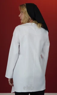 روپوش سفید زنانه اسلش برای پزشکان، پرستاران، دندانپزشکان، داروسازان و پرسنل کلینیکهای زیبایی طراحی شده است. با توجه به جنس کشسان، طراحی ارگونومیک و استایل حرفهای، این روپوش برای بانوانی که به تحرک بالا و ظاهری شیک در محیط کار اهمیت میدهند، انتخابی ایدهآل و راحت است.