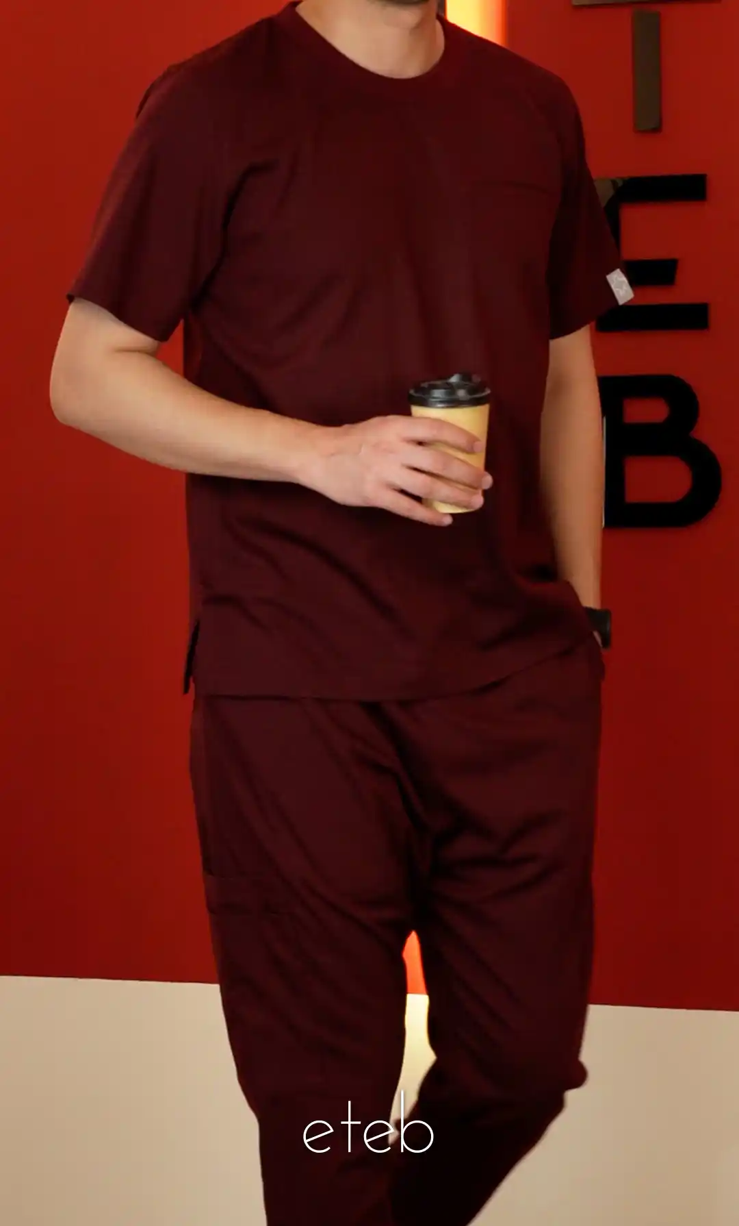 زرشکی – اسکراب شلوار پرایم یقه گرد ISP103